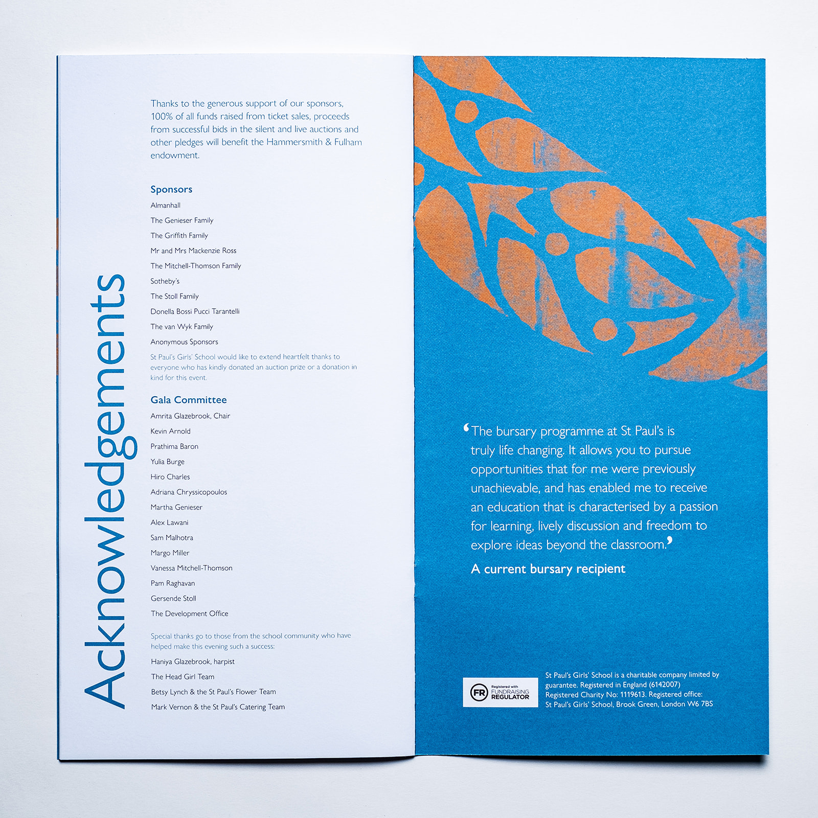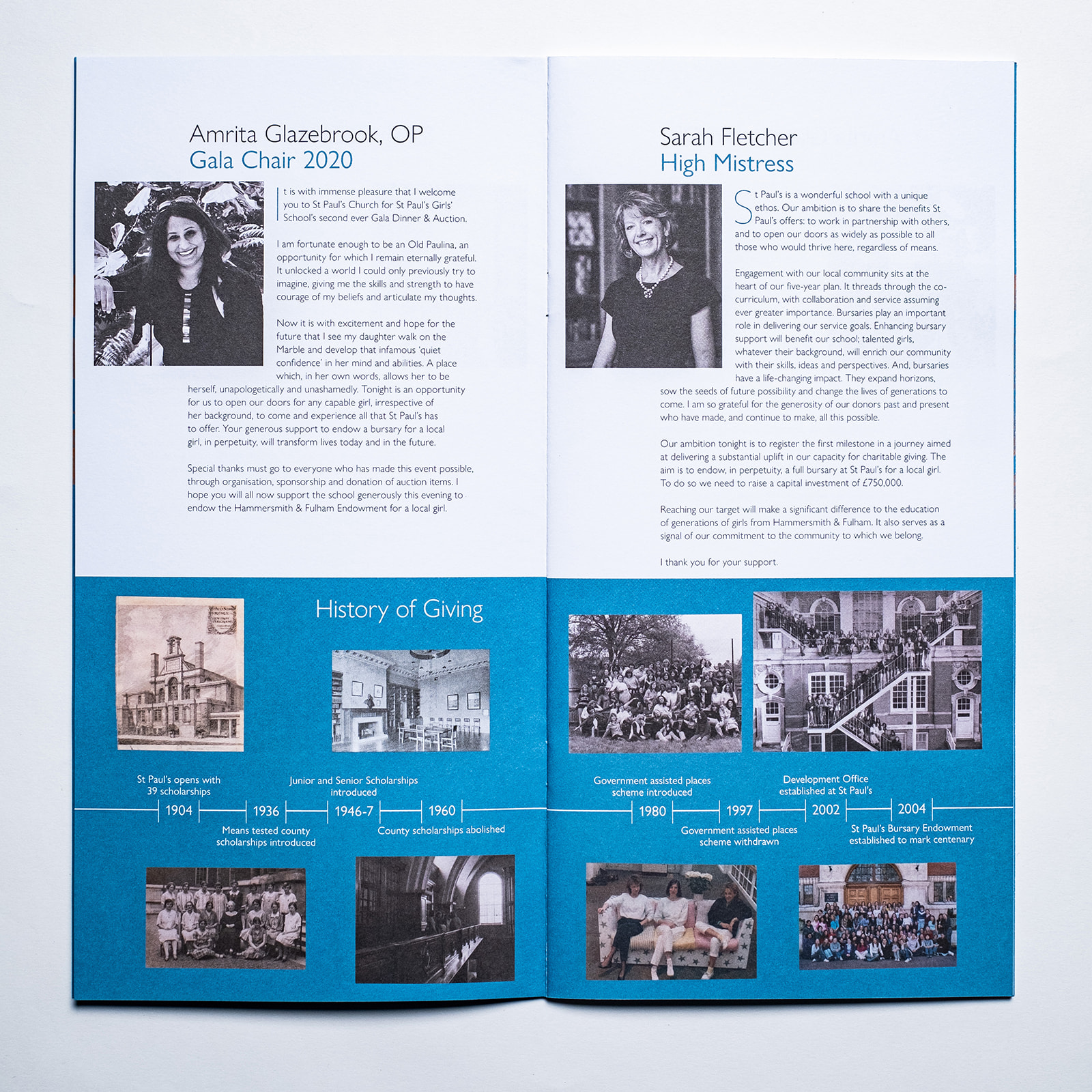 The design for this brochure included a graphic to illustrate the purpose of the event; to raise funds to endow a specific bursary.