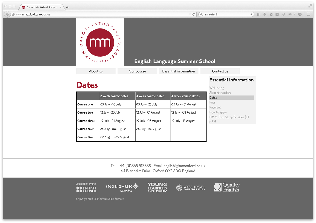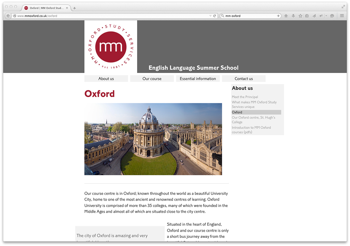 MM Oxford Study Services have been working with young people from across the world, since 1981, teaching English at their summer base in St Hugh's, Oxford. We worked with MM Oxford to develop a new visual identity, still retaining the regal burgundy they had always used for their logo.