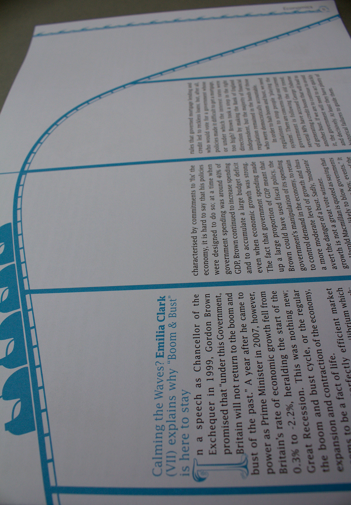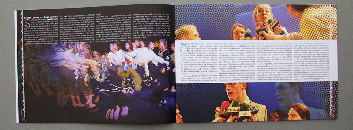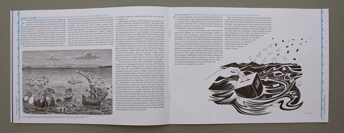 For this issue of Paulina (the annual magazine of St Paul's Girls' School), we designed a bespoke font on the theme of 'Waves' to work for the drop cap for the start of each article. The style of the drop cap was developed to create the illustrated 'wave' page border.