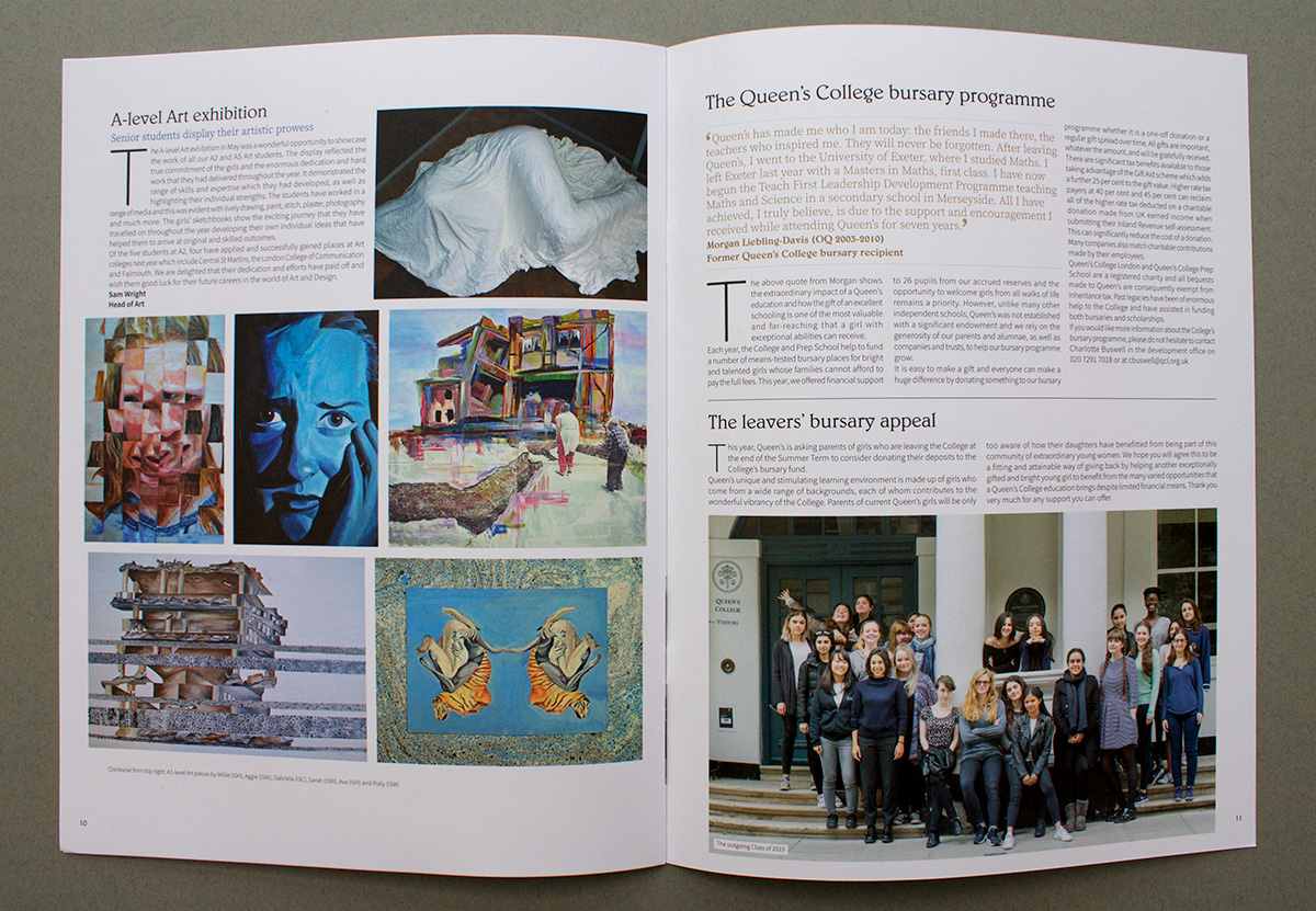 We designed the magazine working with the Development Office at the school, to be compatible with the existing school visual identity.