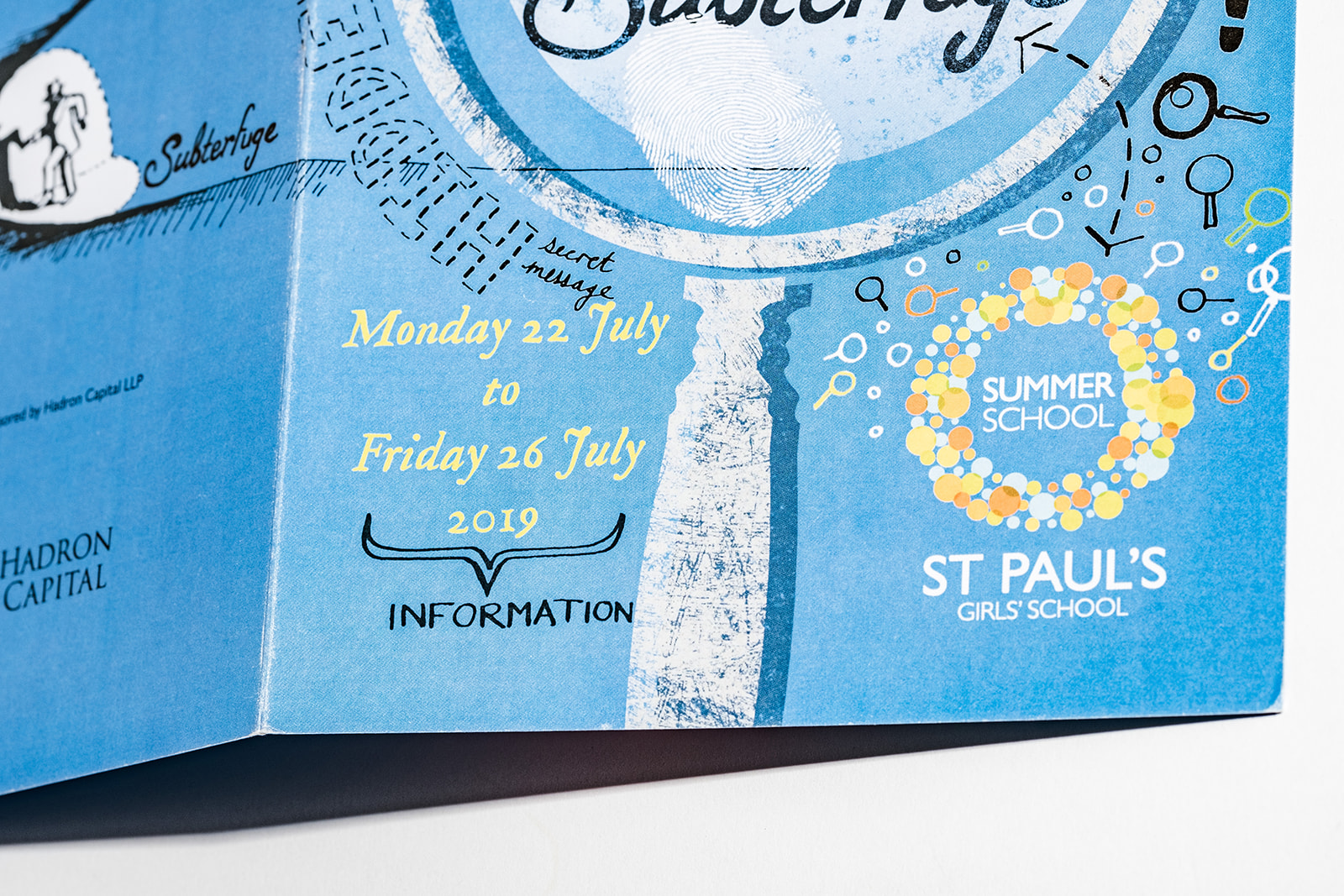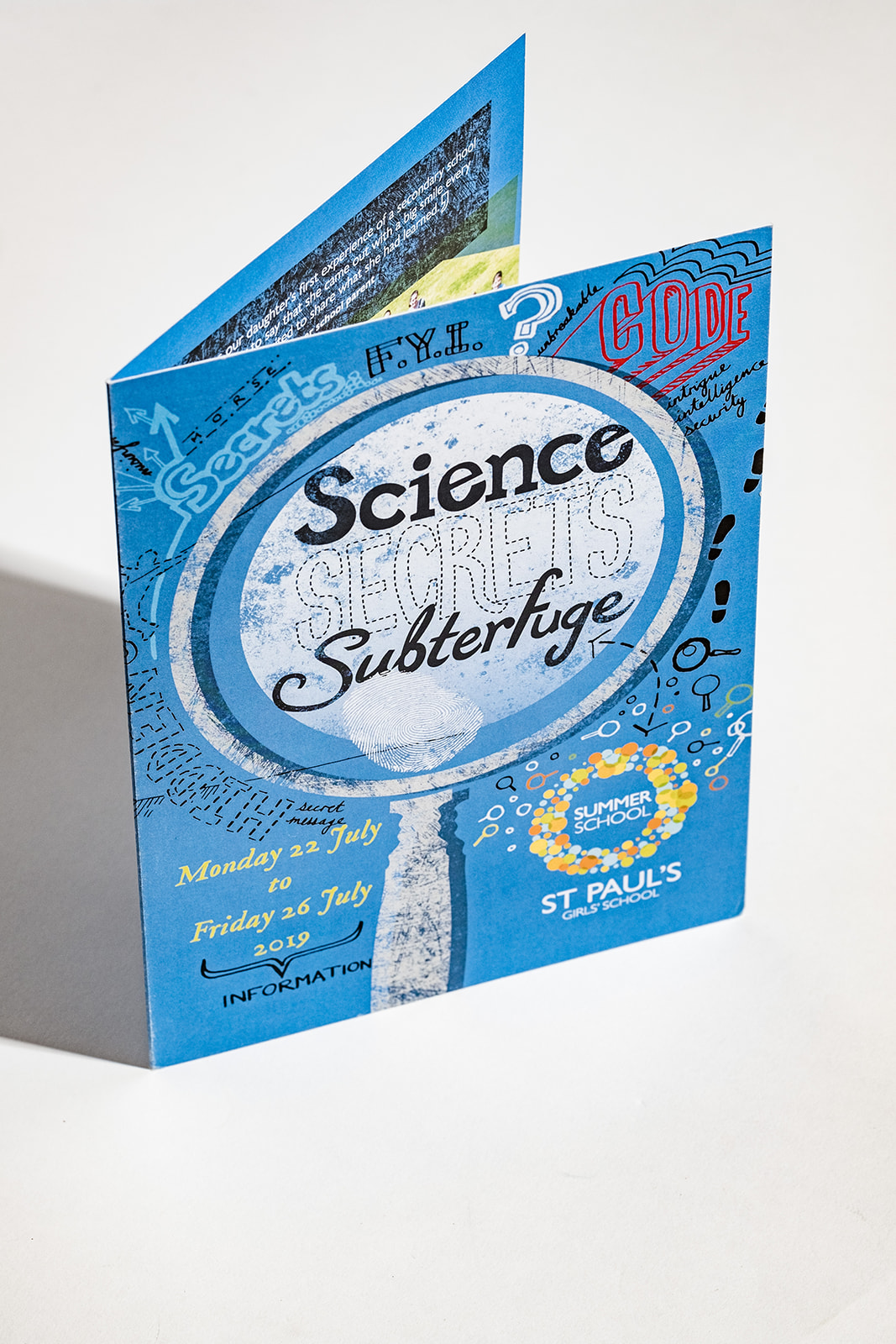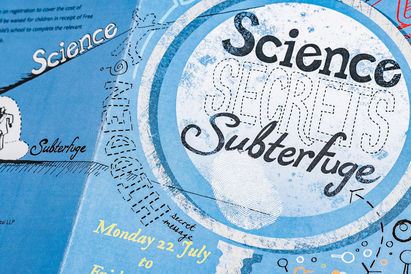 The new brochure design showed children engaged with science connected to spies and spying and so enthusing and exciting primary school children with the chance to take part in the summer school.
