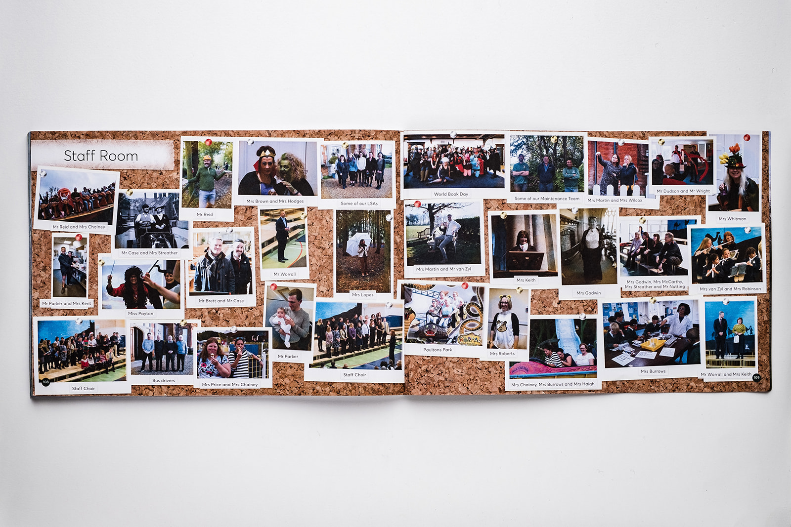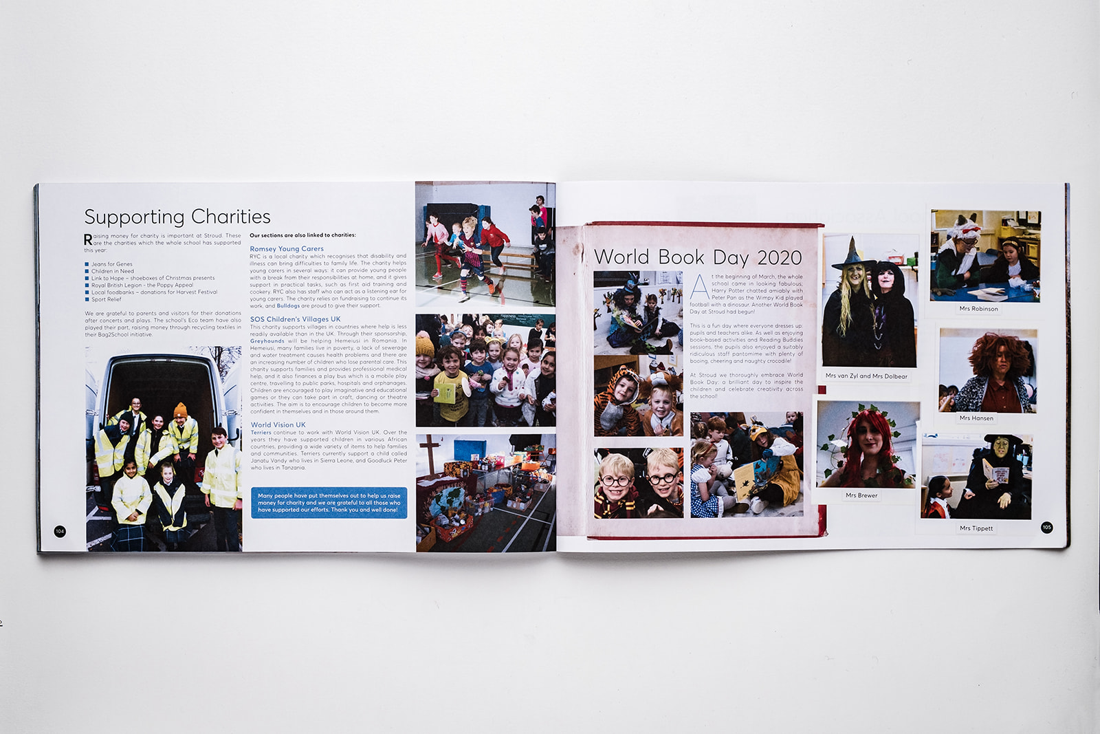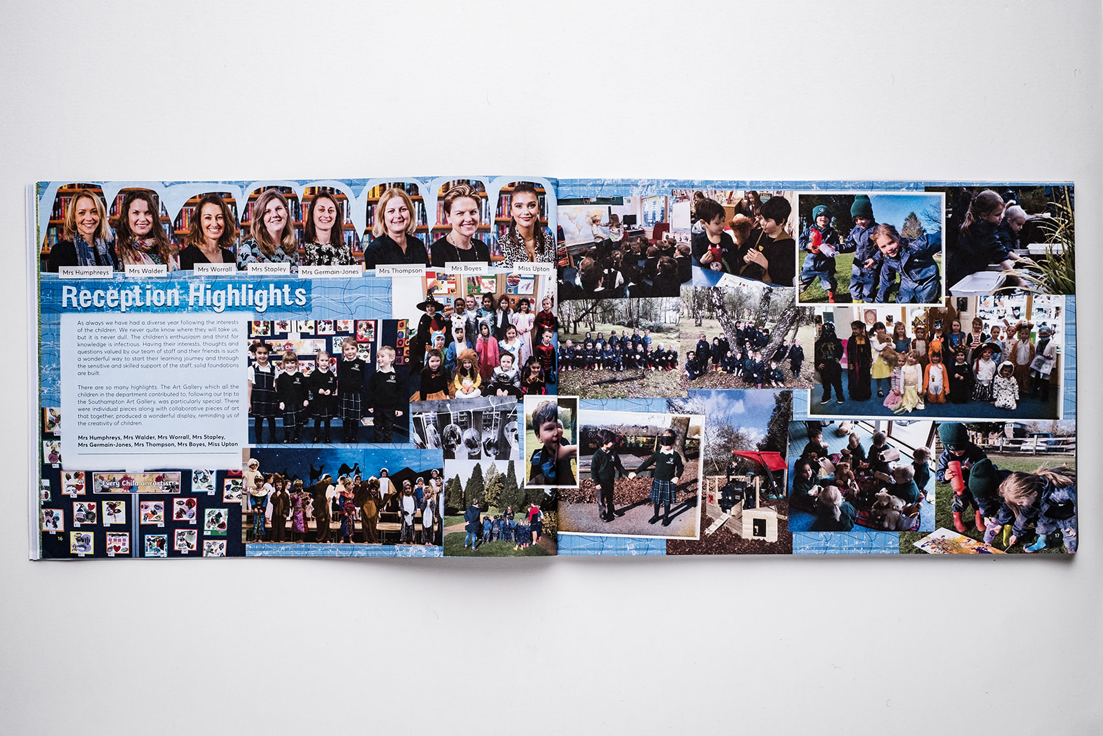 The school's end of year magazine is a celebration of the school community from the previous academic year. Each student writes a few words to express their highlights of the year. We used a handwritten typeface and post-it style graphic for this content to show the voice of each student as distinct from the voice of the staff. Images and graphics for school activities are processed and designed like a scrapbook to suggest the busy, lively and exciting life of the school.