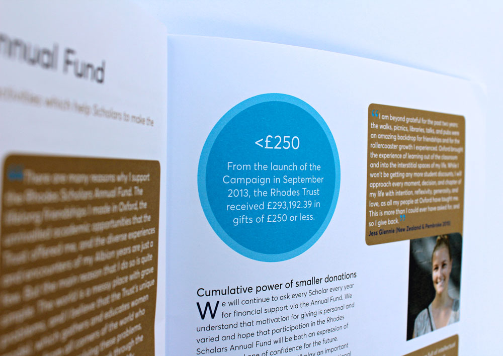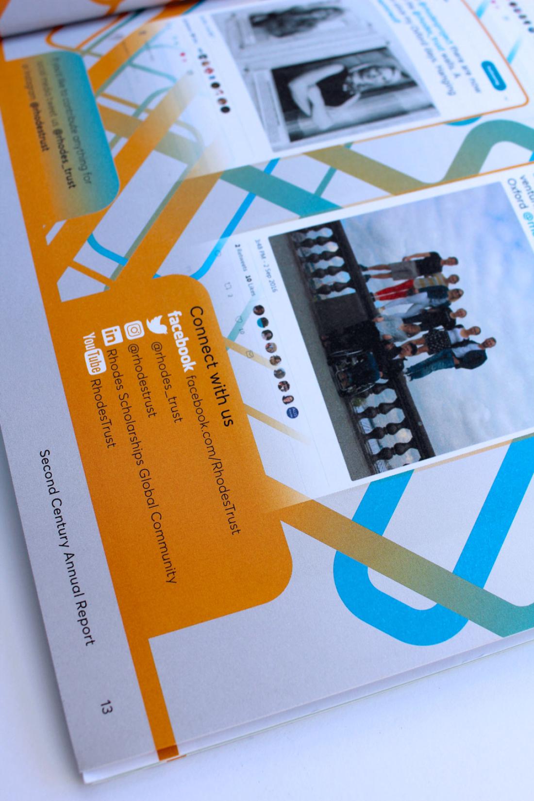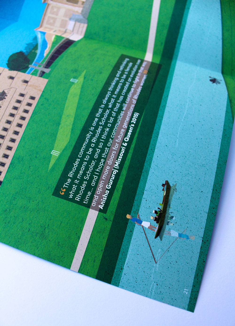 The Annual Report for 2017 includes a throw-out double spread of our illustration of a contrived Oxford panorama of iconic architecture and student-life highlights. On the reverse fold-out pages are our illustrations of current Rhodes Scholars with their words describing their Oxford and Rhodes experience.