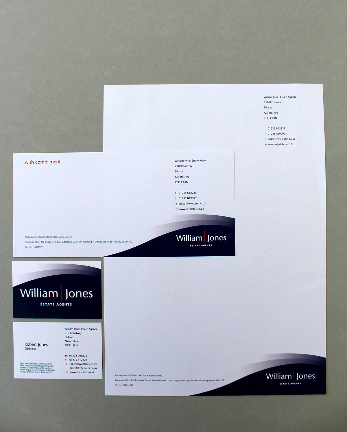 William Jones Estate Agents commissioned us to design their visual identity. The client was keen to use a strong dark blue and orange as their brand colours which would help them to be distinct from local competitors.
