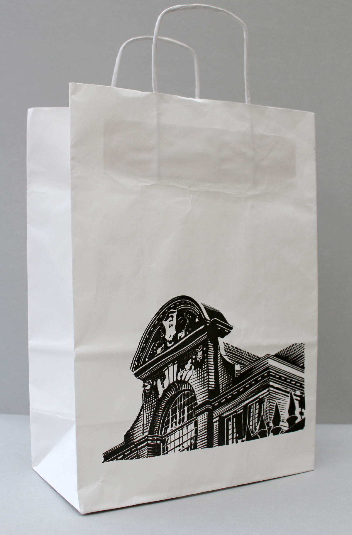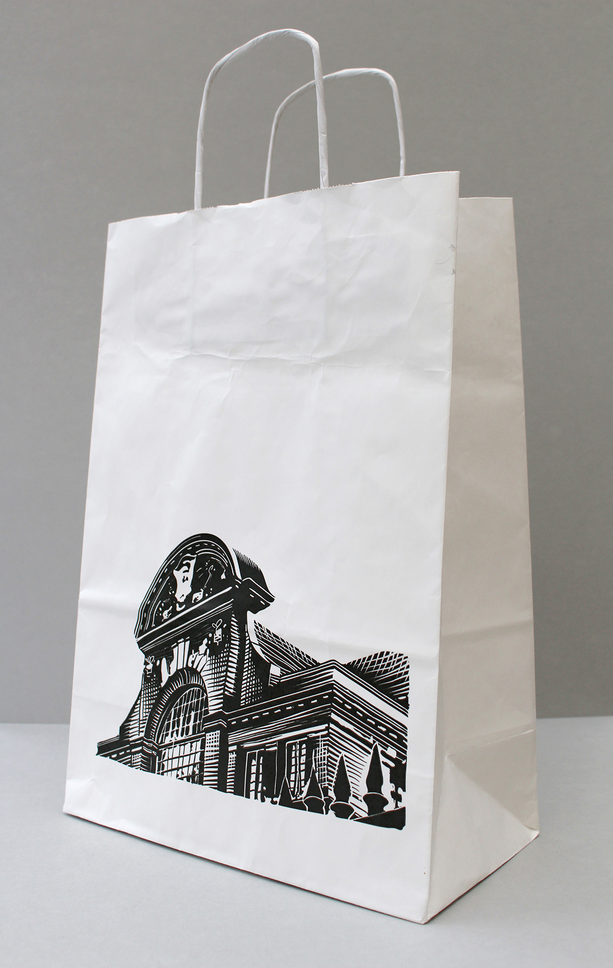 The final wood-cut style illustration was used for paper bags and then developed for an email newsletter header, an incongruous yet quirky twist to apply a wood-cut style print for a digital graphic.