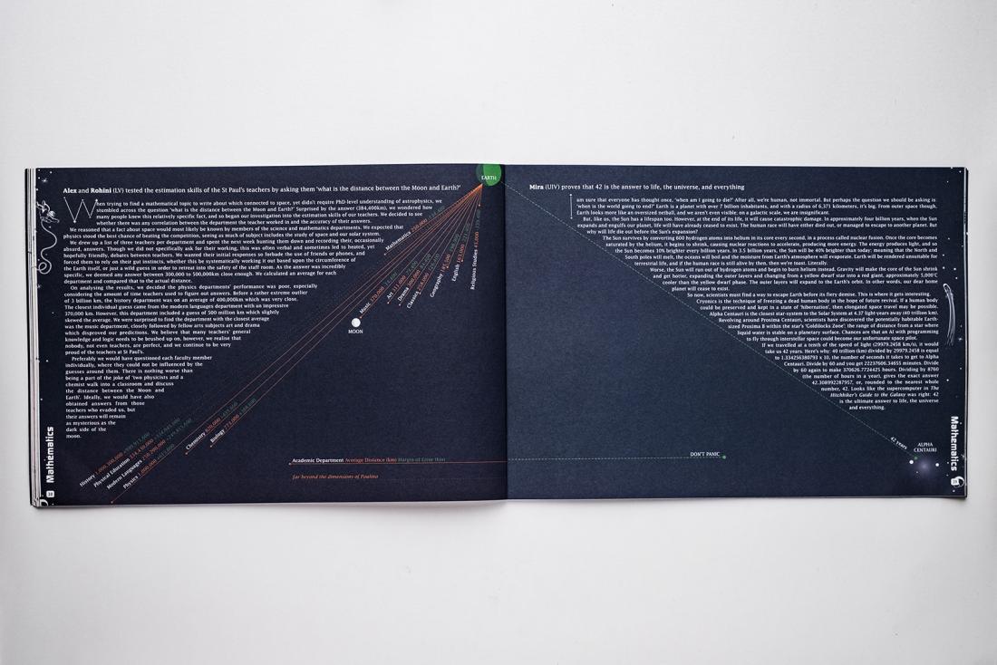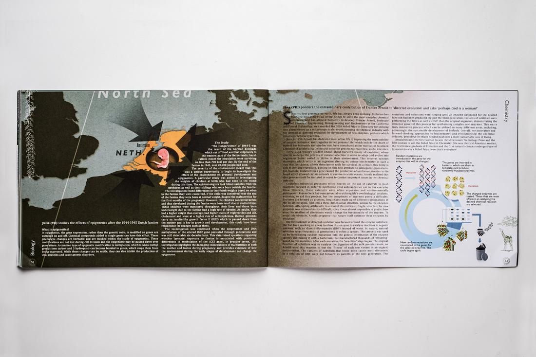We enjoy the process of researching the content and conceiving of a graphic to convey the broad content or a specific concept explained in the text, either precisely or with an abstract take.