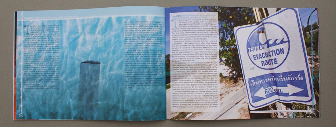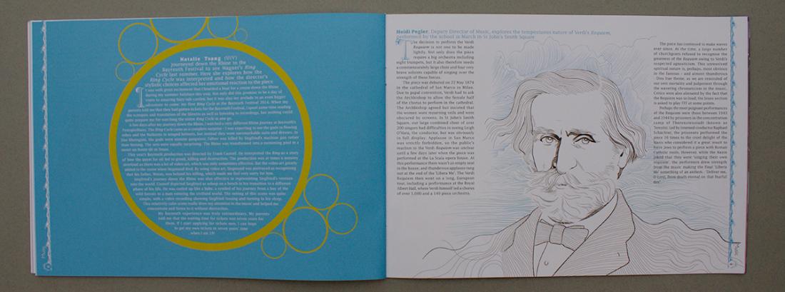 For this issue of Paulina (the annual magazine of St Paul's Girls' School), we designed a bespoke font on the theme of 'Waves' to work for the drop cap for the start of each article. The style of the drop cap was developed to create the illustrated 'wave' page border.