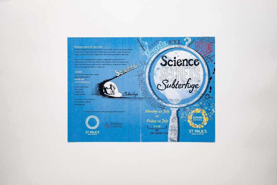 The new brochure design showed children engaged with science connected to spies and spying and so enthusing and exciting primary school children with the chance to take part in the summer school.