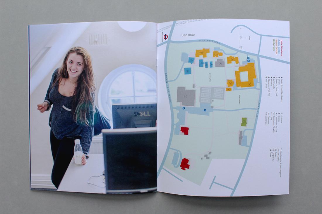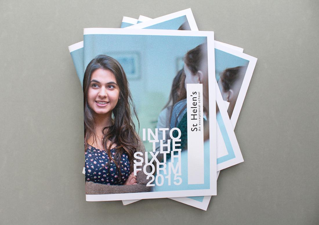This is the second Sixth Form brochure we have designed for St Helen's. This was designed with the school's Information brochure. The two publications were launched as the first in a series of new print materials for the school. A series of illustrations of well-known personalities, with a quote attributed to them about the relevant subject, were commissioned. The illustrations use an energetic, loose style to convey the lively nature of studying at A Level. The brochure draws on the green from the brand guidelines used to identify the Sixth Form as distinct from other areas of the school.