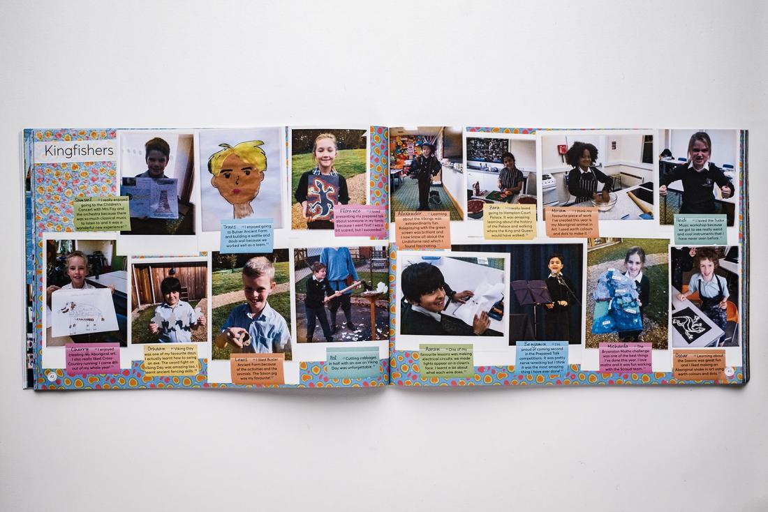 The school's end of year magazine is a celebration of the school community from the previous academic year. Each student writes a few words to express their highlights of the year. We used a handwritten typeface and post-it style graphic for this content to show the voice of each student as distinct from the voice of the staff. Images and graphics for school activities are processed and designed like a scrapbook to suggest the busy, lively and exciting life of the school.
