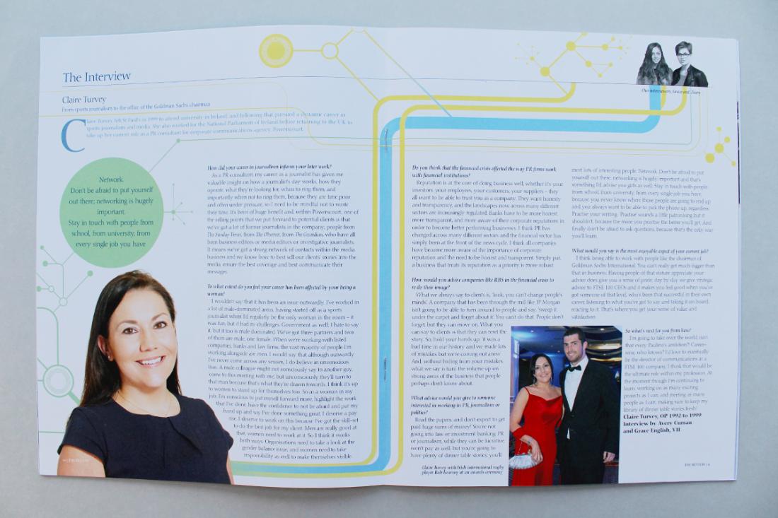 This edition of Review included designing a graphic for the 'Interview' feature spread, to show the important networks that development during time as a student and when working in business.