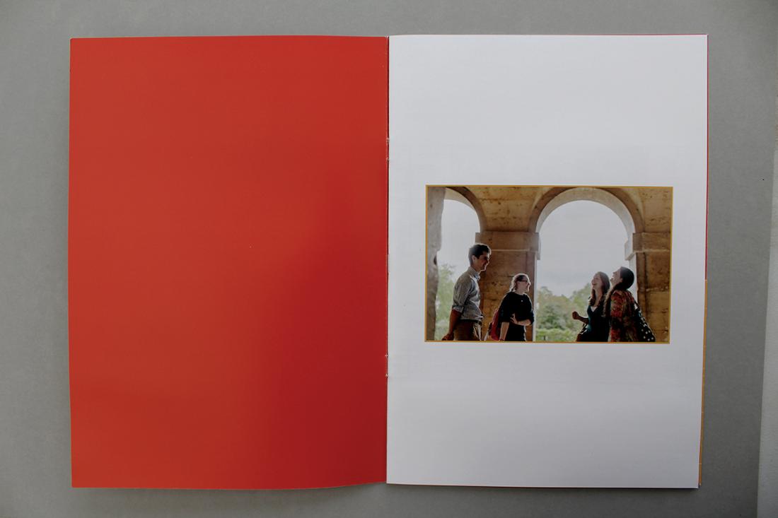 The finished brochure was printed on silk, with a pocket on the inside back cover for inserts and a business card.