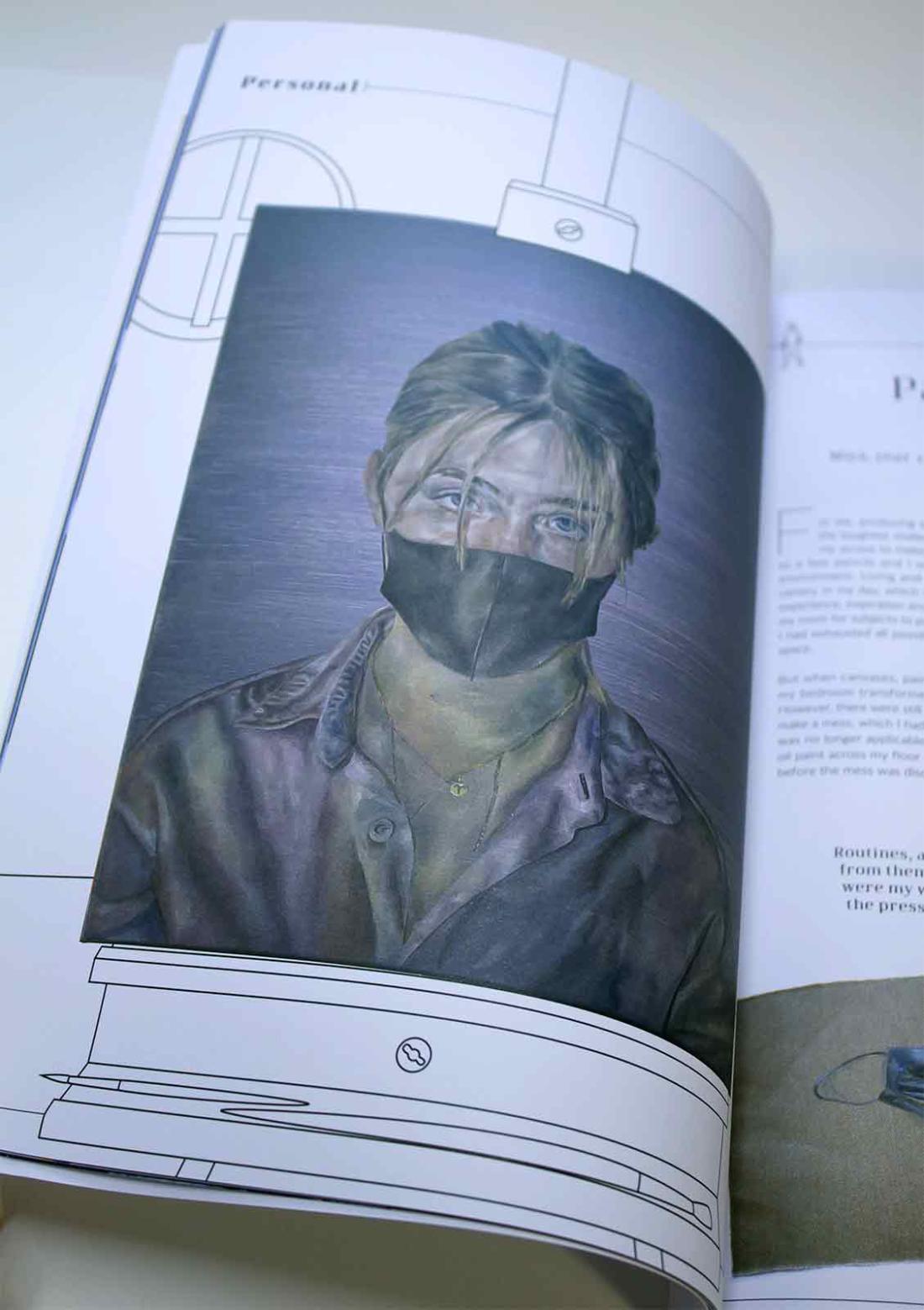 The content was arranged in five sections and for each section we designed a suitable page header, in the style of a single line illustration. Most of the written pieces were presented on a spread with some students' artwork which we used creatively to work with the content and tone of the related article.