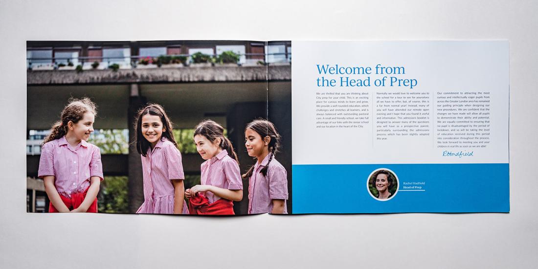 We've worked with City School for Girls in London on a number of design projects including brand and visual identity development guidelines. These brochure were the first print projects to put into practice the new identity. The new brand typefaces, colours, and style and use of imagery are demonstrated through a set of three A4 landscape brochures with a focus on admissions information and engagement.
